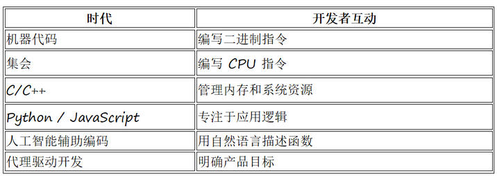 工作流程:人类提出高层目标→ AI代理设计解决方案→ AI编写代码→ AI运行测试→ AI修复漏洞→ AI部署系统。人不再直接与代码交互。相反,他们监督的是结果,而不是实现过程。